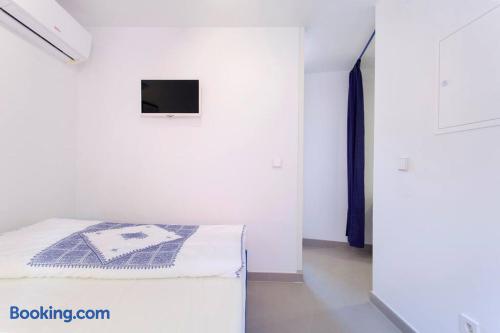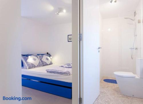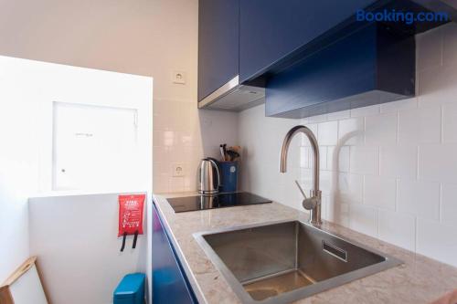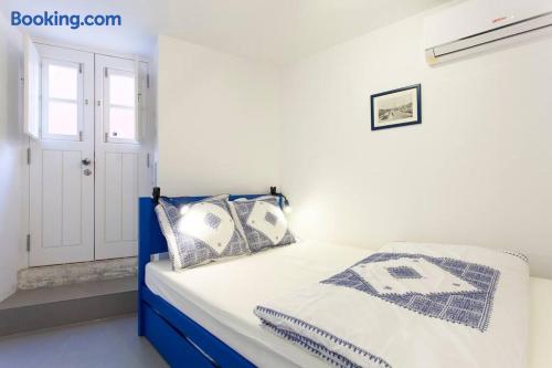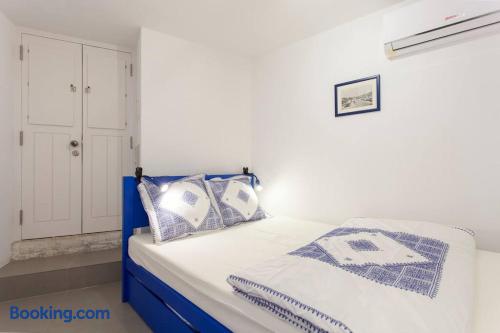Eco-flat (solar heated water) is an open space with a sleeping section and a living room section. It features smart self checkin and five star location in São Vicent - within the famous neighborhood Alfama. Highlights; Low-emission flat featuring solar vacuum tubes Free cleaning, towels, linen, etc Air Condition & electric heating Historic building from 1720´s completely refurbished in 2018. Smart check-in (with access code) Flat is located on the ground floor, around 6 km from the airport.