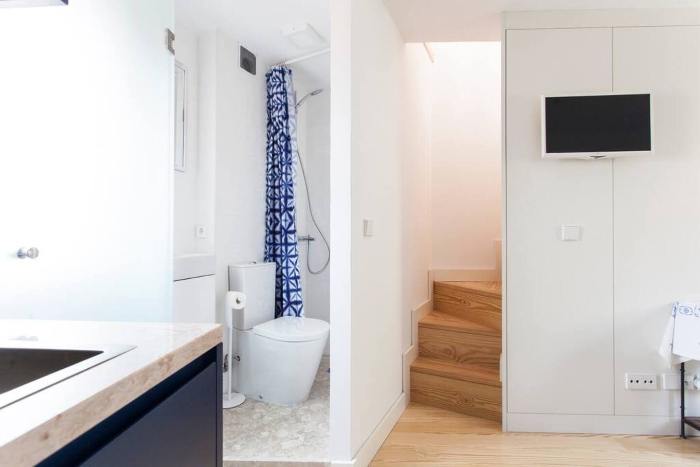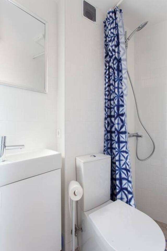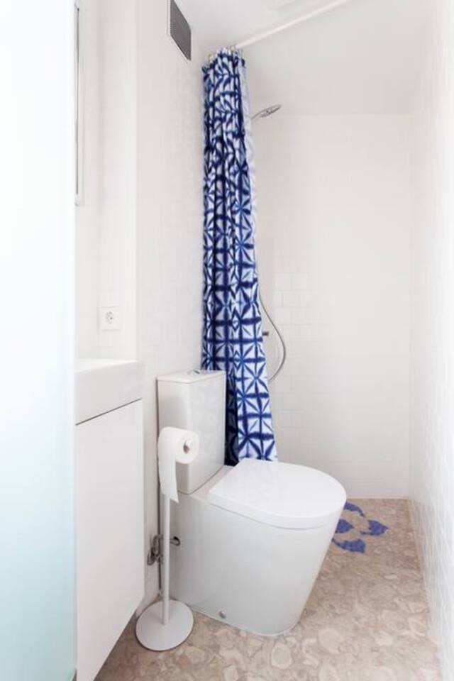 Please note that the space is very small - there is around 15 sqm per floor - and that you will have to sit sideways on the toilet to fit. Sorry about that but the building is from the 1720 (although completely refurbished in 2018) and (small) people have been living on the site since 720s !