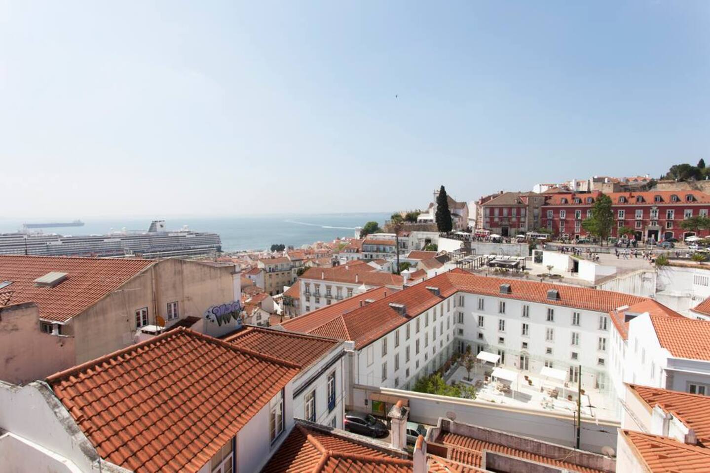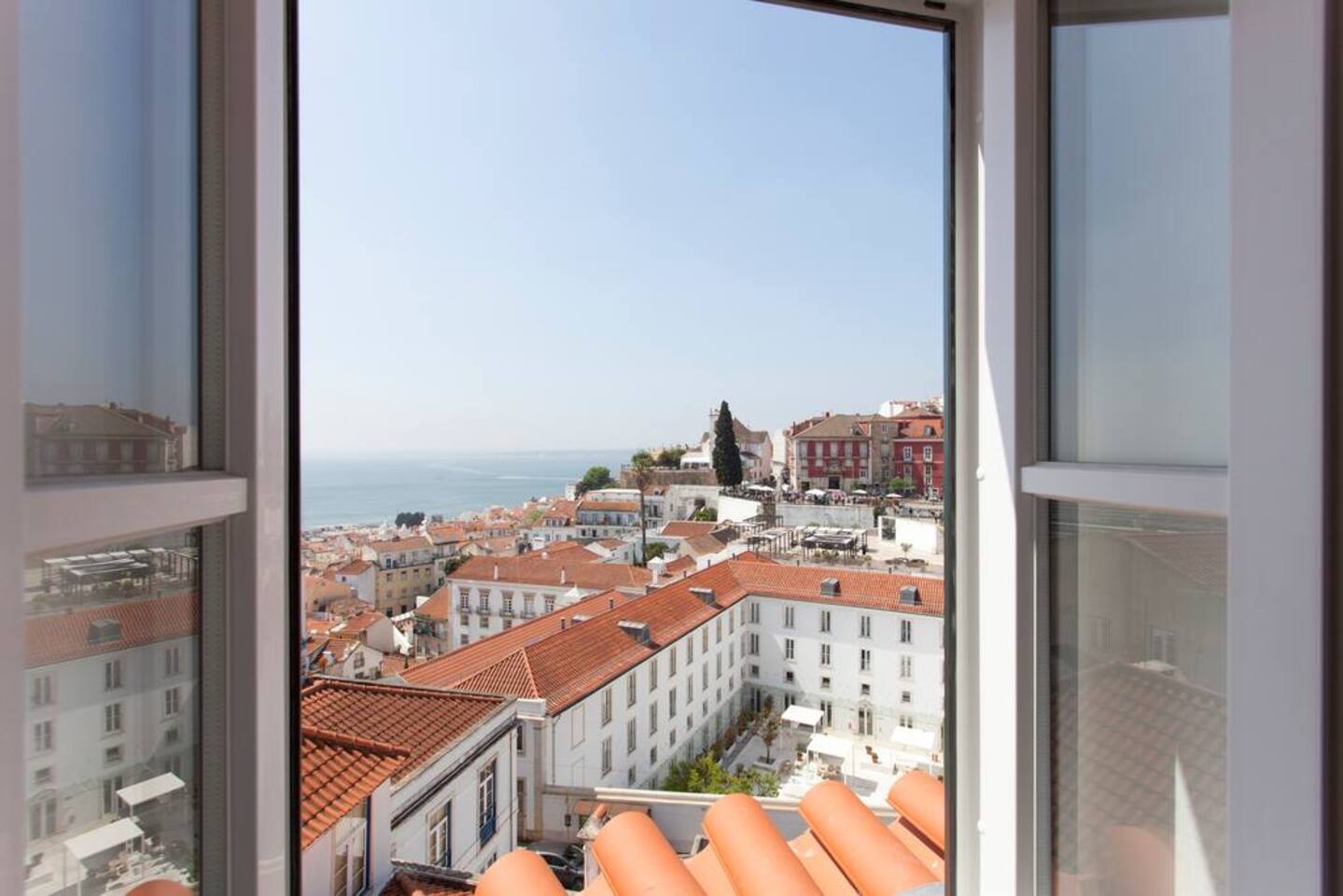 You get a mini-penthouse in two floors with the balcony with arguably the best view of Lisbon!
