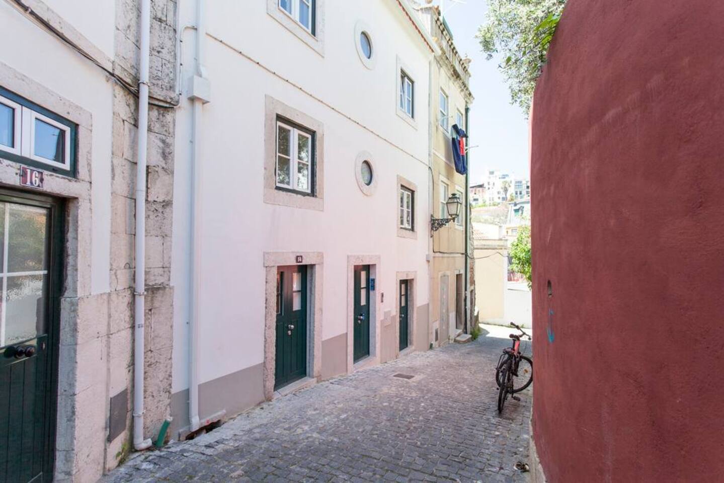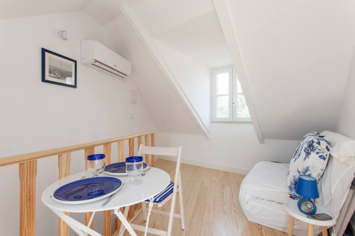 Enjoy the best view in Lisbon! Studio on two floors ; A lower floor with a combined living and bedroom with kitchenette. Upper floor; small living room with sofabed and access terrrace with view! This is an eco-flat with solar panels - on top floor look out the window to the right and you will see solar panels. Smart check-in with code Five-star location in the heart of Alfama / Sao Vicente. Air Condition & electric heating Historic building from 1720´s completely refurbished